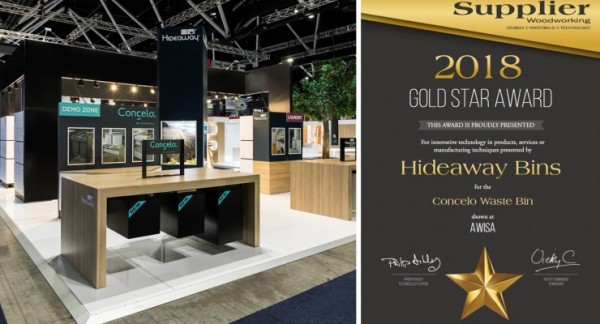 Of the 6 Gold Stars awarded following AWISA, Concelo was the only hardware product to receive the award. As a New Zealand family owned business, being judged alongside the best international hardware brands and receiving this award is a huge accomplishment for the team at Hideaway Bins. It recognizes the level of innovation that has been developed and engineered into the new Concelo range.